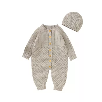 Cozy Knit Baby Romper with Hat – Unisex Long Sleeve Autumn Outfit