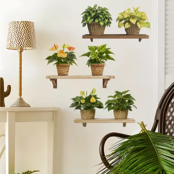 Kitchen Wall Stickers – Potted Plants Decals for Cabinets, Sink & Cupboards